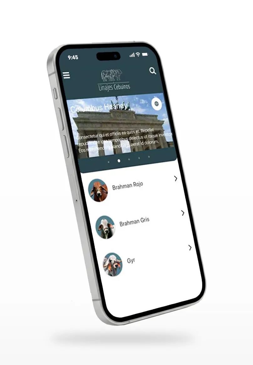 Gestión genealógica y directorio de razas puras. Plataforma técnica para ganaderos de élite que permite visualizar el árbol cronológico de animales y acceder a un directorio global de razas especializadas.